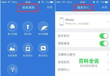 那么管家的其他功能在哪呢?别着急,戳戳右上角的两个小图标,来看看‘极客基地’、‘管家中心’吧。