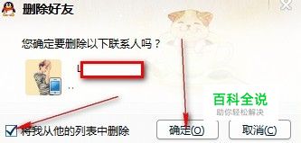 在弹出的对话框中,已默认勾选【将我从他的好友列表中删除】,最后点击确定即可
