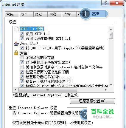 点击【高级】→【重置(S)...】(重置完成后,IE浏览器将自动设为默认浏览器):
