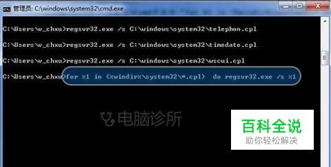 再输入”for %1 in (%windir%\sysytem32\*.dll) do regsvr32.exe /s %1”,按键盘【Enter】(回车)键