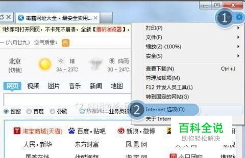 打开【IE浏览器】→点击【工具】→【Internet选项(O)】: