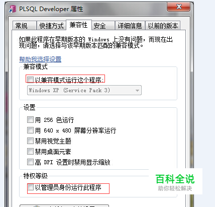 测试连接成功之后,若再次登录plsql/developer弹出空白窗口,则在plsql/developer桌面图标上面右键--属性--兼容性---如图红圈内勾选即可