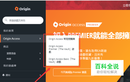 origin分享会员领取步骤二: 打开Origin客户端以后,点击左侧菜单中的“Origin Access”选项。