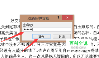 这时会弹出一个输入密码的按钮,如果知道密码,直接输入密码,然后点击确定按钮,文档就已经解锁了。