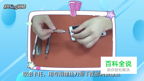 取出卡托,用专用螺丝刀卸下底部两颗螺丝, 用吸盘轻轻用力拉出缝隙。
