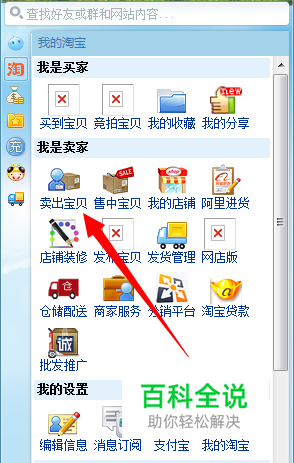 第一步:登入阿里旺旺,点击【卖出宝贝】,如下图所示: