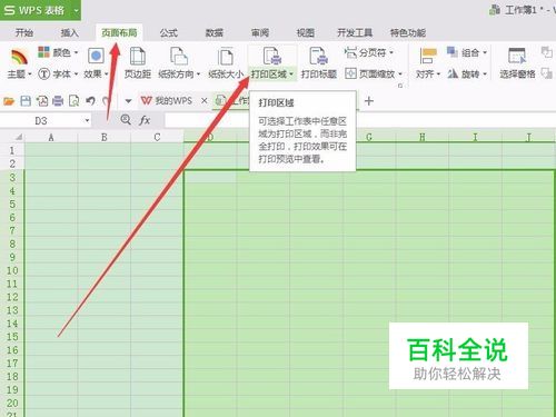 这个时候页面布局会弹出来一个选择对话框,我们选中设置打印区域,如图所示。单元格就会出现一个虚线边框。