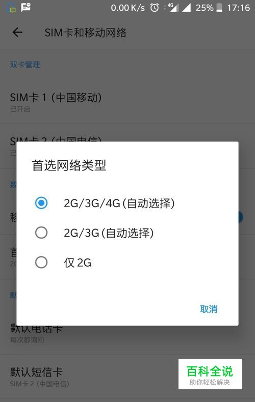 返回,找到你手机设置“首选网络类型”的开关,咱们一般默认打开4G
