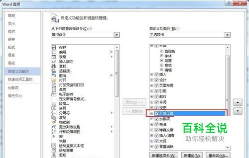 打开word,在文件--选项中,自定义功能区,勾选上 开发工具。