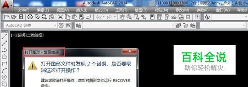 打开后 ,结果软件弹出打开图形,发现错误的页面提示,打开图形文件时发现两个错误,如果取消此次操作,那么就选择是