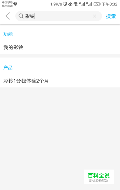 在搜索栏输入“彩铃”,点击“搜索”,点击“我的彩铃”