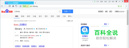 在查找框内输入要查询发音的单词。此处以Library为例。再点击百度一下,所需要的单词就被查找到了。