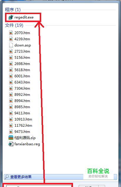 outlook 软件本身本人没有找到修改的地方,只有通过注册表修改,在windows 7 或更高级版本中,最好用administrator 用户修改,如果是普通管理员也可以尝试修改,首先打开注册表,点击开始菜单,弹起的对话框中输入regedit回车或者鼠标点击,启动注册表。如下图;