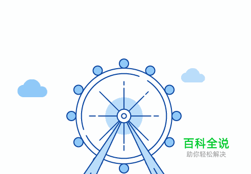 最后,填充上喜欢的颜色,添加地平线和一些云朵,摩天轮就画好了。