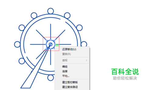 用直线工具绘制一条直线,右键“排列-后移一层”,将直线放置在两个圆心的后面;