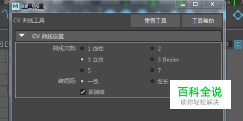 打开软件,点击“创建”——>“曲线工具”——>“CV曲线”。默认参数即可。