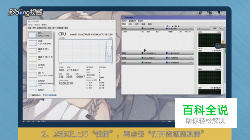打开左上方“性能”,点击“打开资源监视器”。
