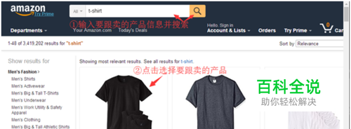 在亚马逊买家页面键入关键词搜索、选择你想要跟卖的产品,如图:
