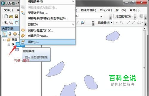 在Arcmap中,右键点击图层,选择“属性”
