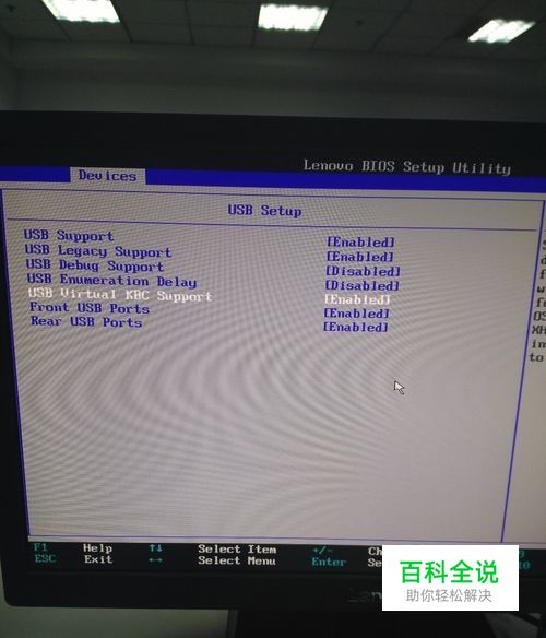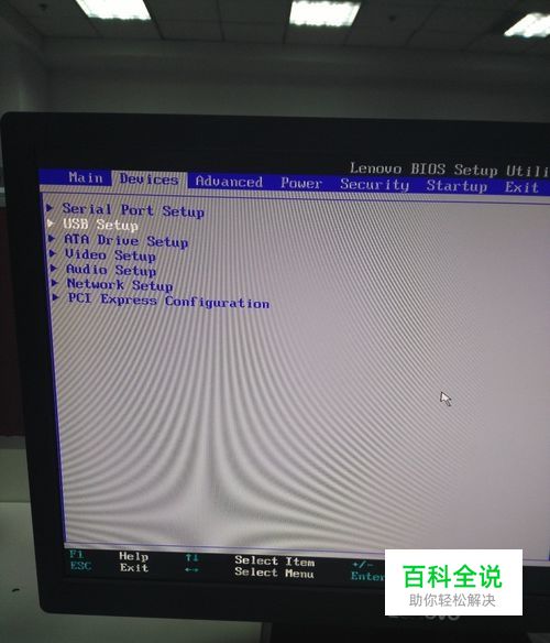 开机后按F1进入BIOS设定,选择第二标签DEVICES,选择USB SETUP选项