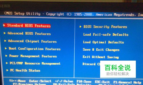 2、把光标移到standard BIOS features(就是是BIOS主界面里面的第一项)上,敲回车键进入