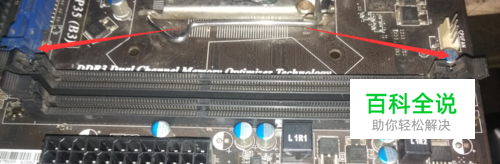 将主板的内存插槽的两侧的卡扣轻轻掰开。(现在有的主板只有一侧可以掰动。)