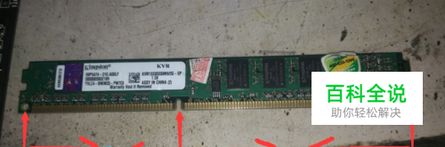 内存平放到桌子上观察内存,内存接口部分中间有个凹槽,凹槽的一侧明显长于另一侧。