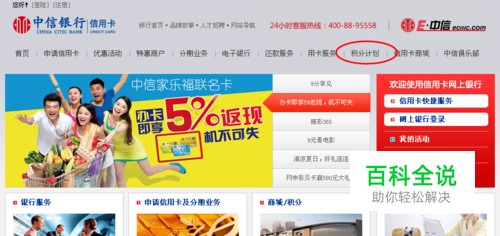 2、登陆中信银行官方银行,找到“积分计划”;