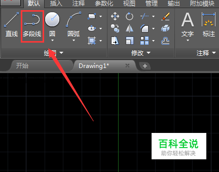 在该界面内找到多段线命令,如图所示: