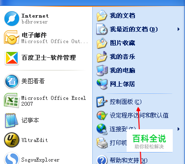 我们首先点击电脑左下角的开始按钮,找到“控制面板”