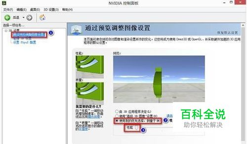 2. “3D设置”---“通过预览调整图像设置”---“使用我的优先选择,侧重于”---“性能”---“应用”;