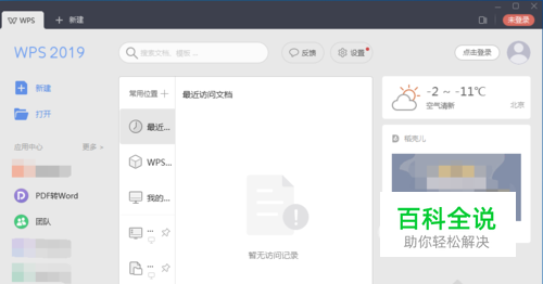 首先我们打开WPS2019,在首页可以看到最近访问记录,如图所示。