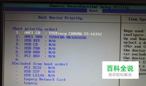 进入到启动项的选择与确认的界面了,如下图所示: 然后找到自己U盘的名字,U盘启动(USB HDD)这一栏,将这一栏移动到做上面,这里使用的是F5/F6进行上下的移动。设置好之后就如下图所示: