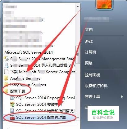 单击“开始”---->“所有程序”---->“Microsoft SQL Server 2014”---->“配置工具”---->“SQL Server 2014 配置管理器”,打开配置管理器。