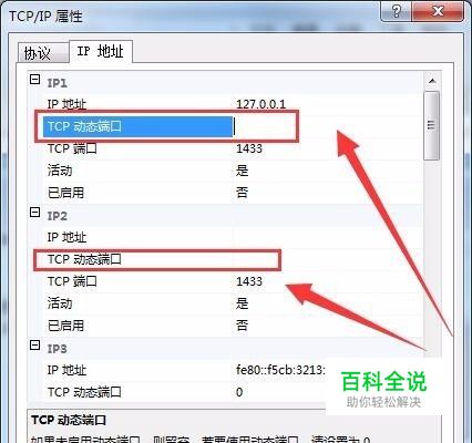 将IP1和IP2中的“TCP动态端口”的值修改为空,如下图所示。