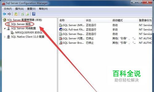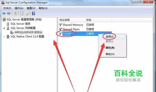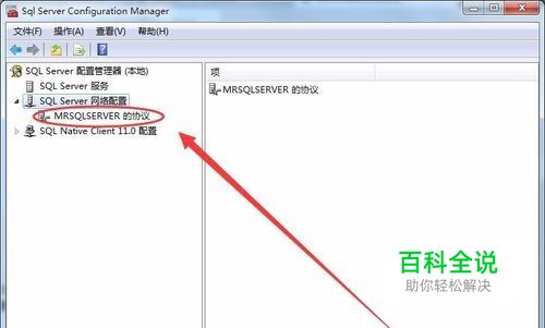 找到“SQL Server网络配置”,展开后单击“MRSQLSERVER的协议”选项。