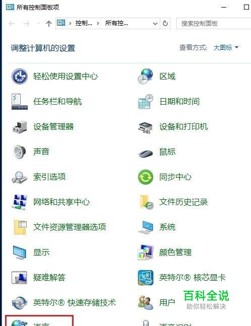 .在“控制面板”选项卡中选择“语言”菜单;