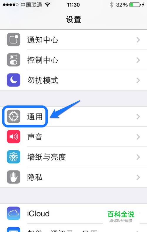 在设置列表中,找到 “通用”选项,点击打开,如图所示