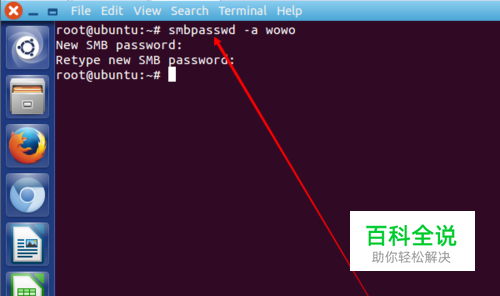 目前存在的账户有root和wowo,为已有的账户添加密码,小编的账户是“wowo”,在root账户下输入命令:smbpasswd -a wowo。