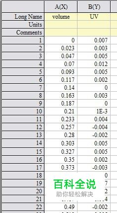 导入绘图所需的数据,在我的另一篇经验中,我已经介绍过了,这里不再赘述。 如下图中,我需要做一条曲线,分别将横纵坐标导入origin中。
