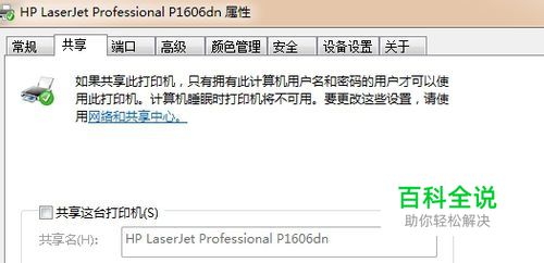 右击要共享的打印机,选择“打印机属性”---选择“共享”选项卡。“如果共享此打印机,只有拥有此计算机用户名和密码的用户才可以使用此打印机”提示在共享后需要拥有此计算机用户名和密码才可以进行打印。