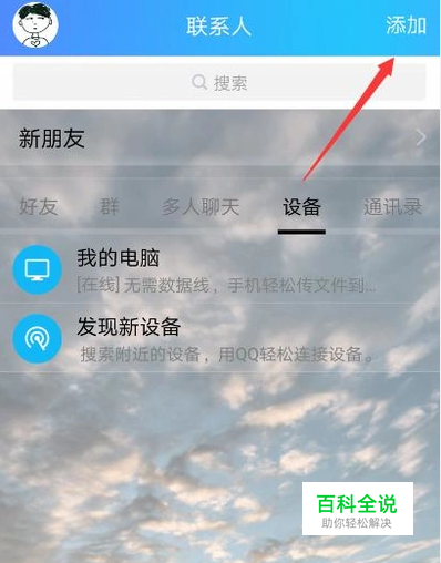 第一步要做的就是关注腾讯信用公众号,打开QQ,在联系人页面点击右上角的“添加”。