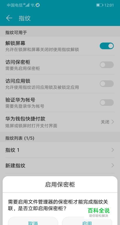 华为手机可以开启指纹访问保密柜,不过需要先启用保密柜功能才能开启。