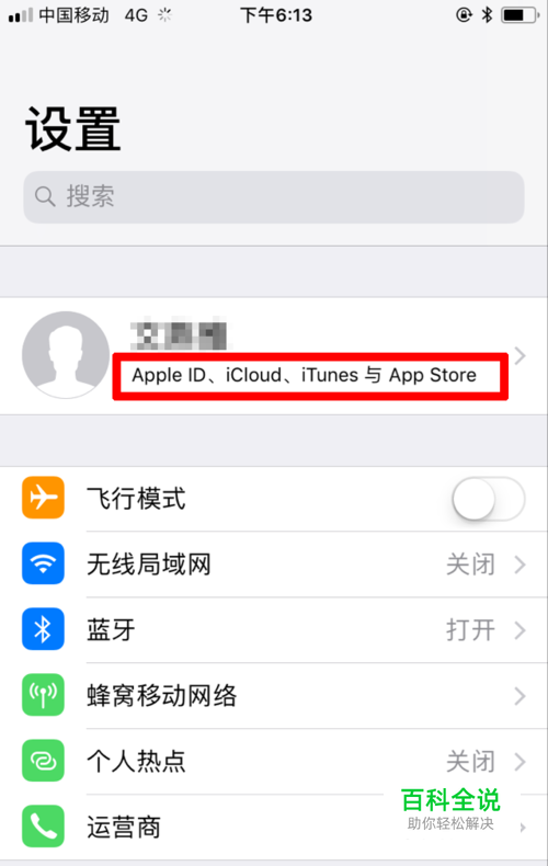 进入设置选项后,找到APPLE ID