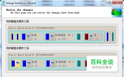 接着选择“C盘”,并点击“合并分区”按钮,在打开的“合并分区”向导中直接点击“下一步”完成分区的合并操作。