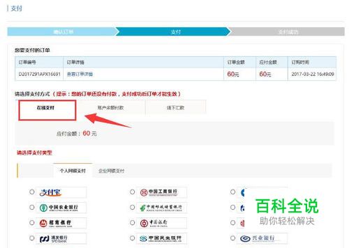 点击支付,会出现在线支付和银行卡,线下支付等。这里我选择 “在线支付”