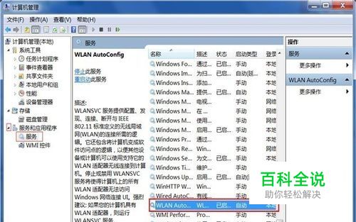首先你要知道什么是无线网卡服务—WLAN AutoConfig(无线网卡的服务)这个就是无线网卡的服务 查看的方法: 计算机—右击管理—点小三角符号—服务,可以在右边查看到这两个服务(图1)。 若服务未开启,选择未开启的服务—右击属性—选自动—启用—确定,一般开服务需要重启电脑才生效,重启下电脑即可!