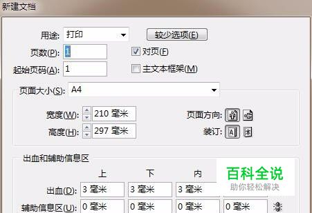 以A4单页为例,设置参数,点击版面网格对话框