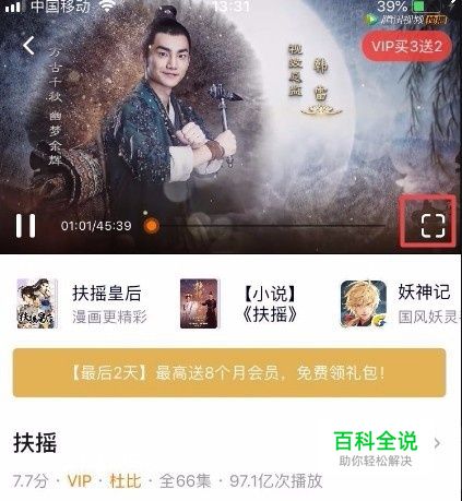 打开你想要看的视频,点击视频右下角的全屏标识(或手机横屏),使得视频处于全屏模式。