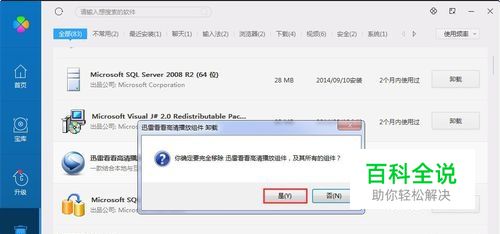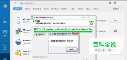 选择要卸载的软件,并点击卸载按钮(比如我们要卸载迅雷看看)。